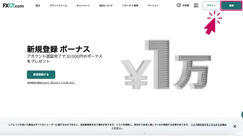 FXGTのアカウントを登録していない人はFXGTの公式ホームページにアクセスします。