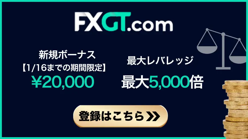 | FXGTの口座開設ボーナス | 【1/16までの期間限定】 20,000円 ※Optimus口座限定 |