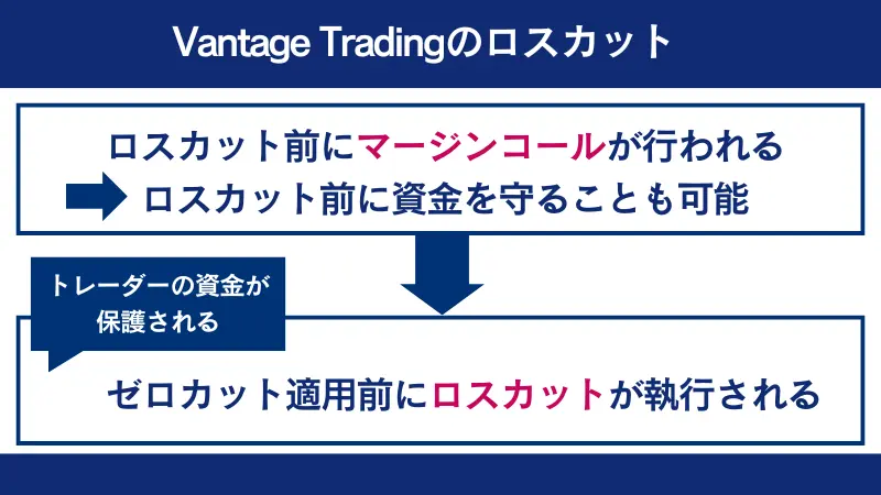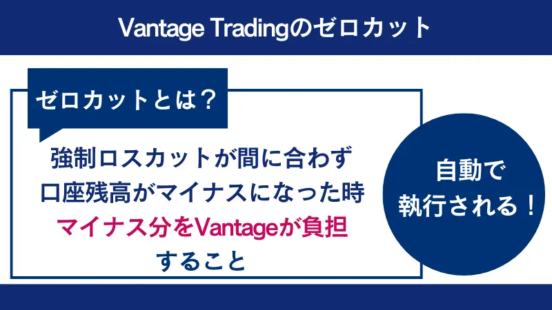 Vantage Tradingでは、ゼロカットが適用される前に、ロスカットが執行されることで、トレーダーの資金が一定の範囲内で保護される仕組みになっています。